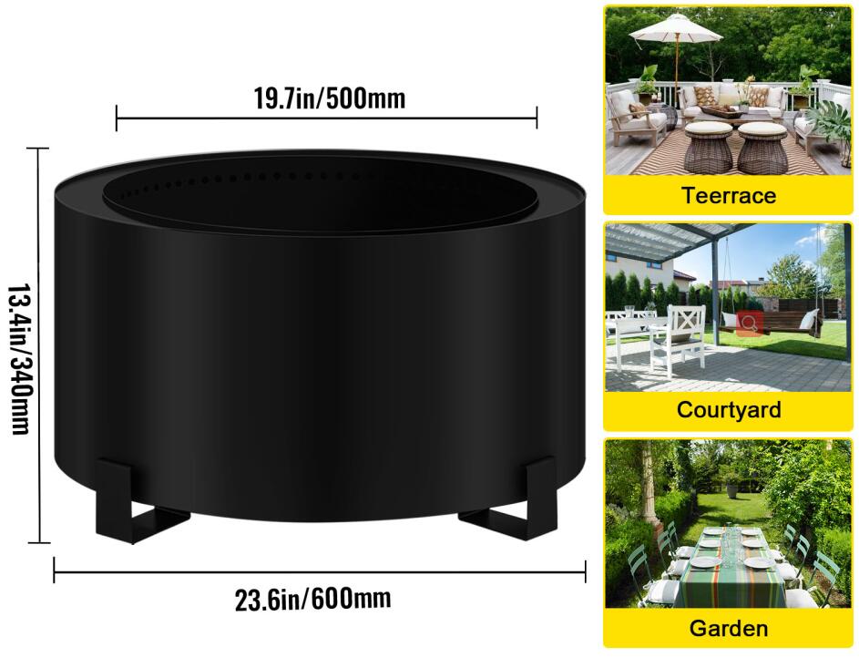 Our fire pit is made of carbon steel for high heat-proof and rust-proof. This fire pit adopts a unique airflow plan for more complete wood combustion with almost no smoke